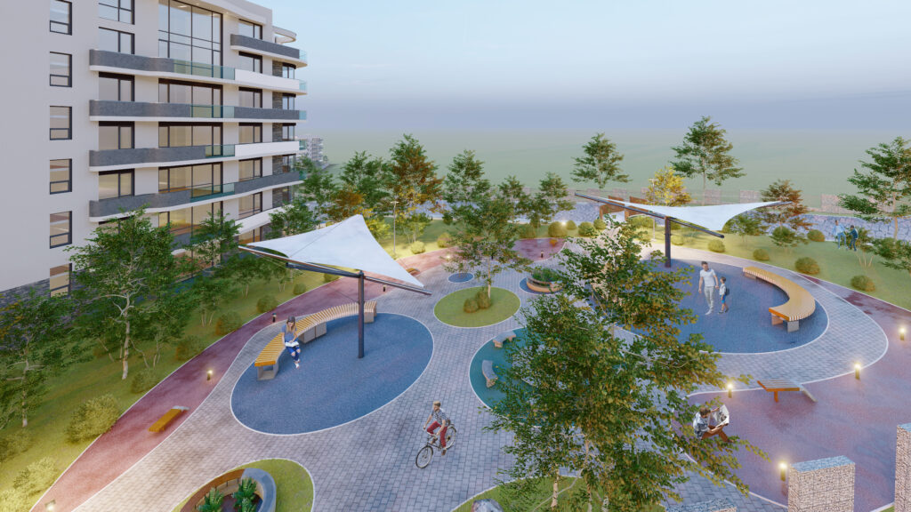 Бид уг төслийн концепцийг төлөвлөхдөө хэрэглэгчдийн хэрэгцээнд үндэслэн орон сууцны хэсгүүдийг хооронд нь үйлчилгээний зориулалттай хүзүүвчээр холбож, эко тоглоомын бүс, амралтын бүсийг төлөвлөснөөс гадна орон сууцнууд бие биенийхээ харагдацыг хязгаарлахгүй тагтны хэсгүүдийг төлөвлөсөн билээ. Мөн байгалийн тогтоц, газрын гадаргын налууг ашиглаж ландшафт гадна тохижилт, усан толио, зам талбай, спорт талбайг бүх насны хэрэглэгчдэд хүртээмжтэй байхаар төлөвлөсөн. Барилгын хэлбэр нь хагас дугуй хэлбэрийг үүсгэж, дунд давхрууд нь дээд болон доод давхруудтай алсуур холбогдох гоёмсог хөдөлгөөний бий болгосон. Гадна хаших бүтээцийн өнгөлгөөг хөнгөн цагаан хавтангаар төлөвлөсөн нь тус төслийн өндөр чанар, тансаг байдлыг илэрхийлнэ.