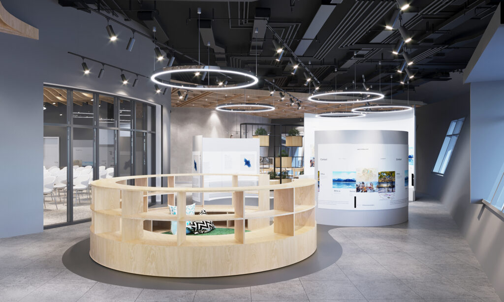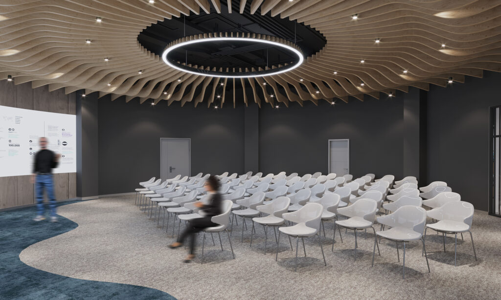 ALPHA ZONE орон сууцны хотхоны оршин суугчдад тусгайлан зориулж хөршүүд хоорондоо танилцах, бизнесийн хамтрагчаа олох, урт хугацааны найрсаг харилцааг бий болгох зорилготой Community Center-н интерьер дизайныг захиалагчийнхаа хүсэл, зорилгод нийцүүлэн хэрэглэгчдэд ээлтэй дизайны шийдлээр боловсрууллаа. Өнгө нь хүний сэтгэлзүйд ихээр нөлөөлдөг тул хурлын өрөө, оффис, заал, амрах хэсгийн талбай тус бүрд тохирсон тайвшруулах, бүтээлч байдлыг нэмэгдүүлэх өнгөнүүдийг сонгосноос гадна, хүний биеийн эргономик, хэрэгцээ шаардлагад нийцсэн тавилга төлөвлөлтийг бий болгохоор зорьсон юм.